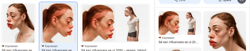 - Dålig hållning – såg ni den bilden på influensern i framtiden! Men alltså välkommen till 2050 med exsem, håravfall och puckelrygg.